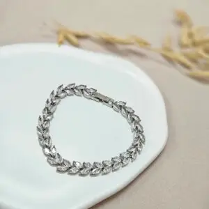 This bracelet features a slim rose gold chain adorned with sparkling crystals for a subtle yet elegant shine. The adjustable sliding clasp ensures a perfect fit for any wrist, combining style with comfort.