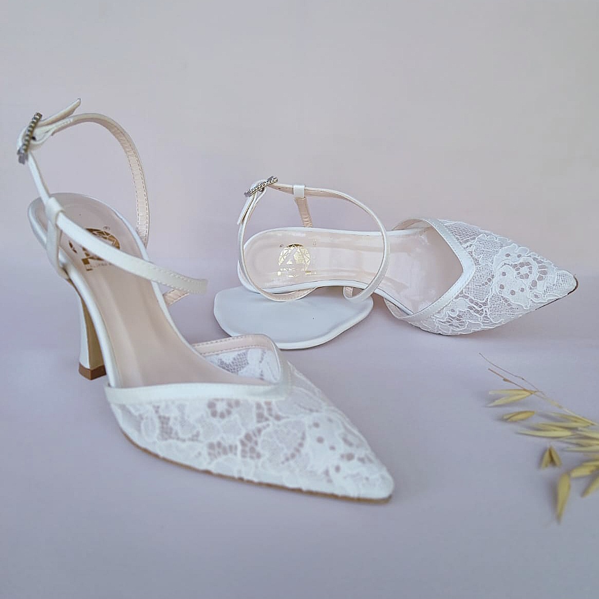 Crafted by skilled Italian artisans, these comfortable handmade bridal heels feature delicate floral lace, a secure ankle strap, and a softly cushioned insole that supports your feet from the first step to the last dance. The mid-height heel provides stability and grace, making it perfect for tango dancers or anyone who values refined movement and timeless beauty.