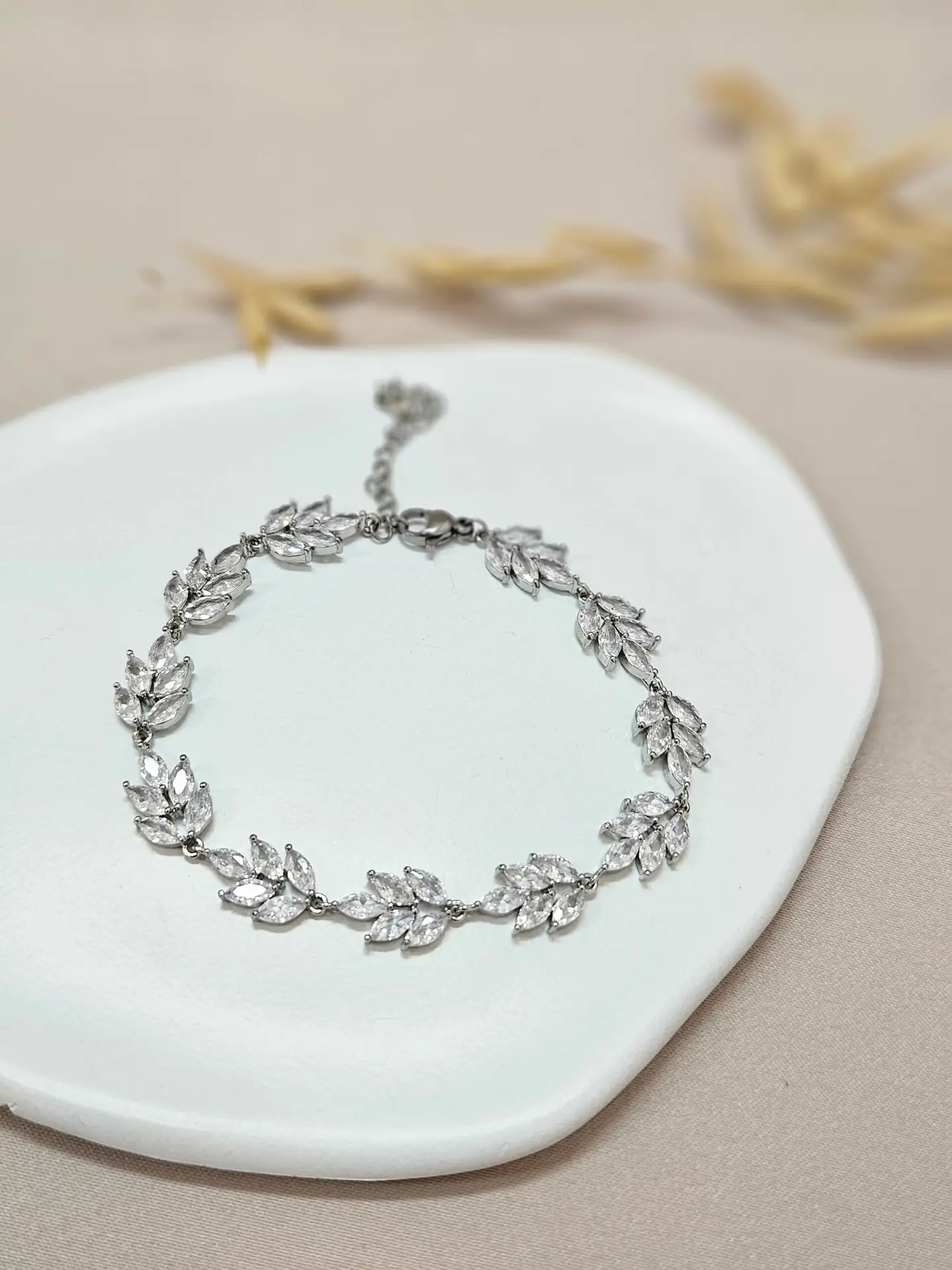 This bracelet features a slim silver chain adorned with sparkling crystals for a subtle yet elegant shine. The adjustable sliding clasp ensures a perfect fit for any wrist, combining style with comfort.