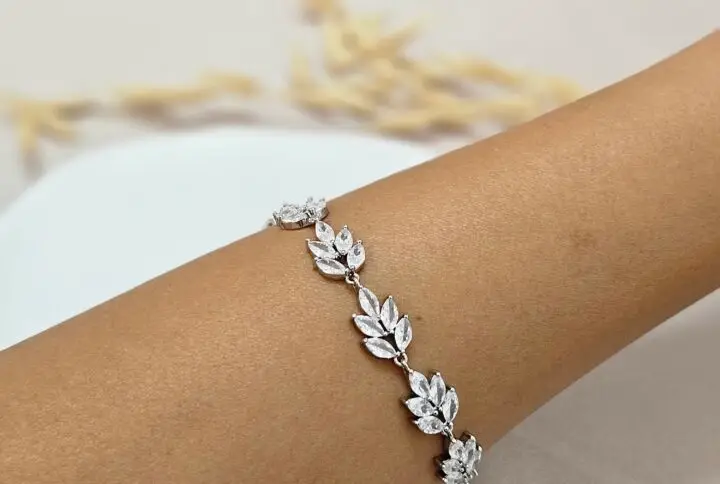 This bracelet features a slim silver chain adorned with sparkling crystals for a subtle yet elegant shine. The adjustable sliding clasp ensures a perfect fit for any wrist, combining style with comfort. Where and How to Wear It: Perfect for brides wanting a touch of romantic sparkle on their wedding day, and equally beautiful for … Continue reading Julia Bracelet – Delicate Crystal Leave Adjustable Bracelet -ABSC12