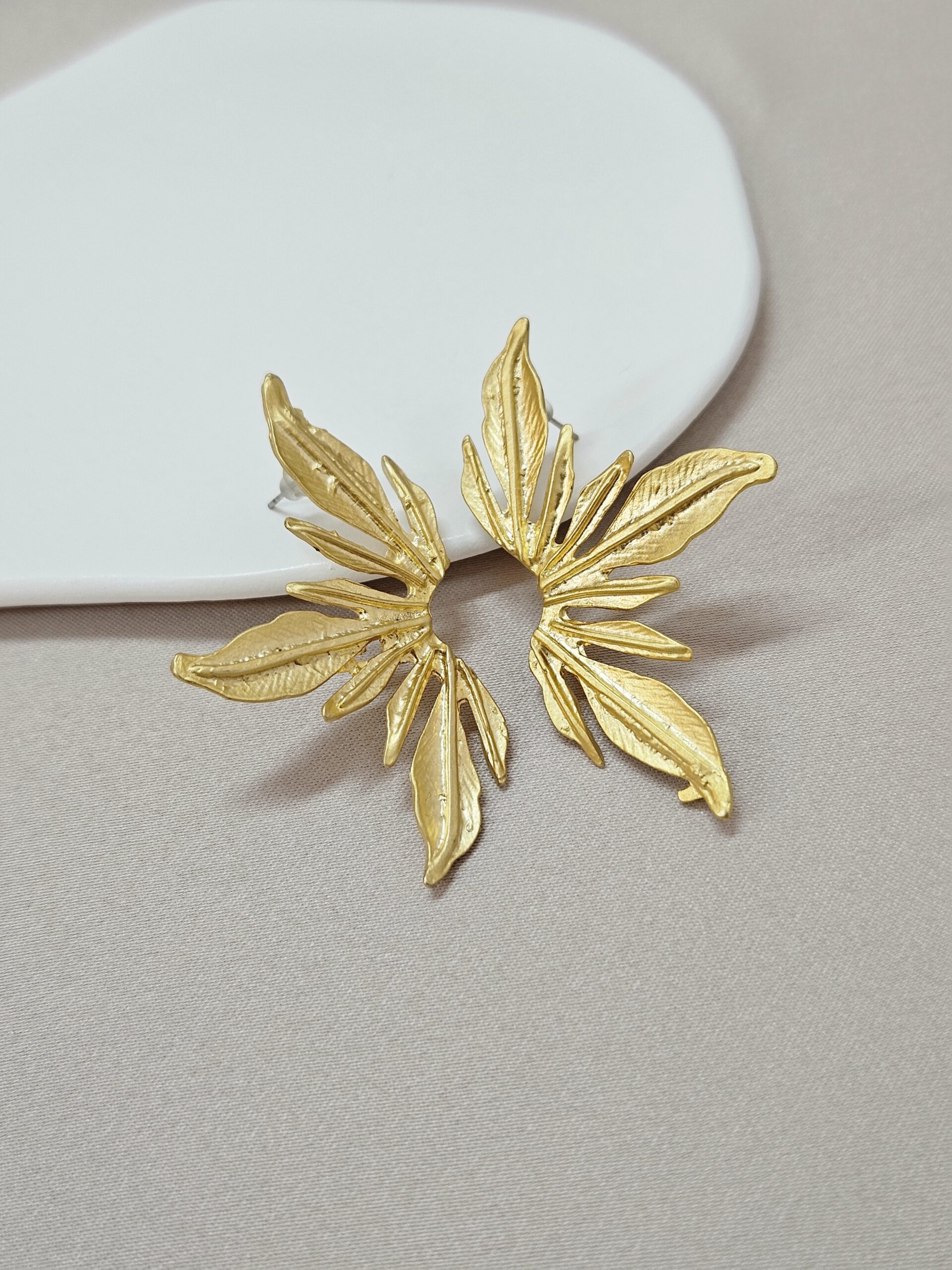 From our Greek Collection, these statement boho gold earrings feature a striking leaf design, radiating earthy elegance and artisan charm. The textured gold finish captures light beautifully, creating a bold yet natural look that channels the spirit of ancient Greek artistry and modern boho style.