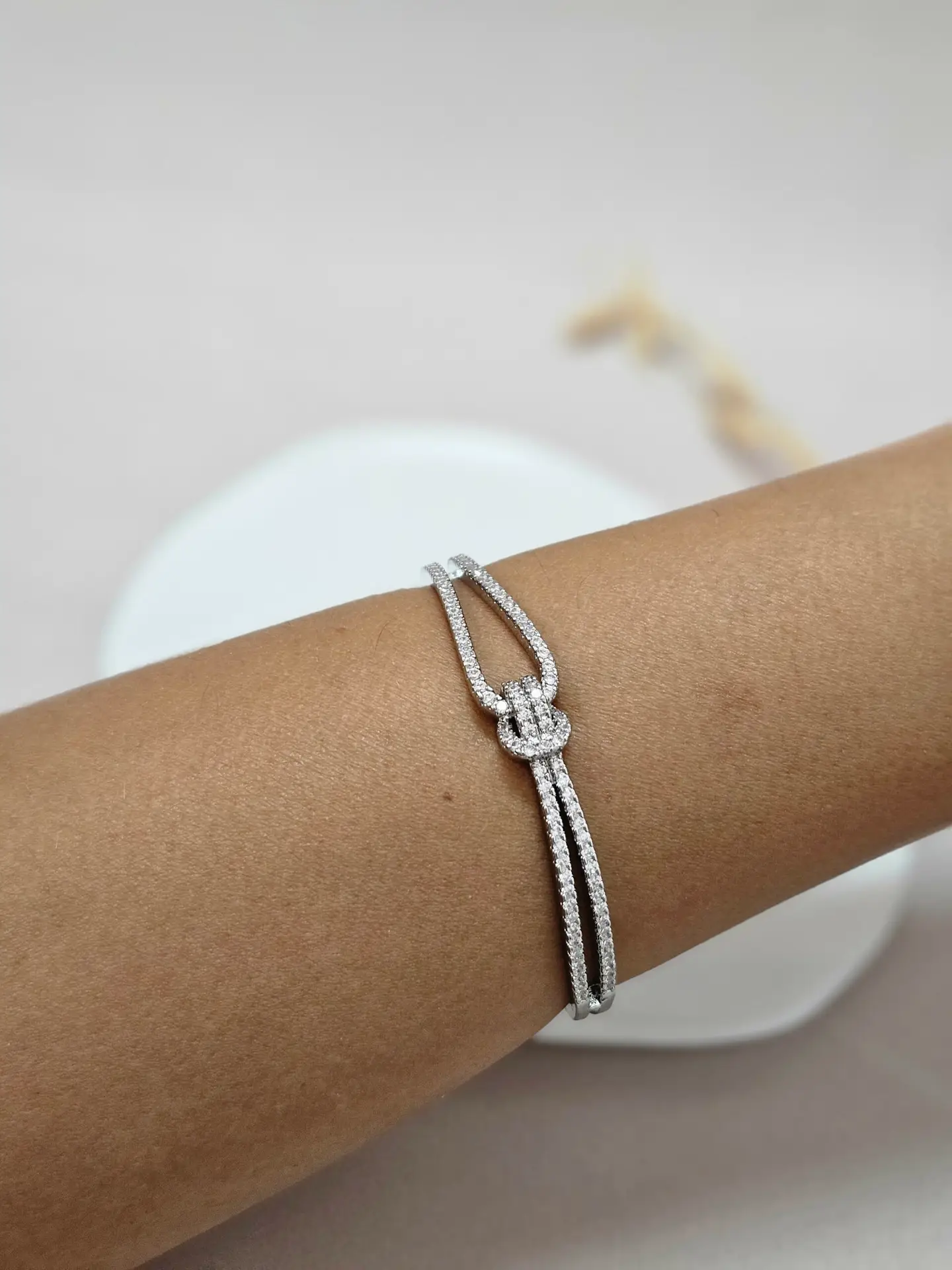 A stunning silver bracelet that exudes elegance, adorned with dazzling, high-quality zirconia stones for a touch of luxurious sparkle.